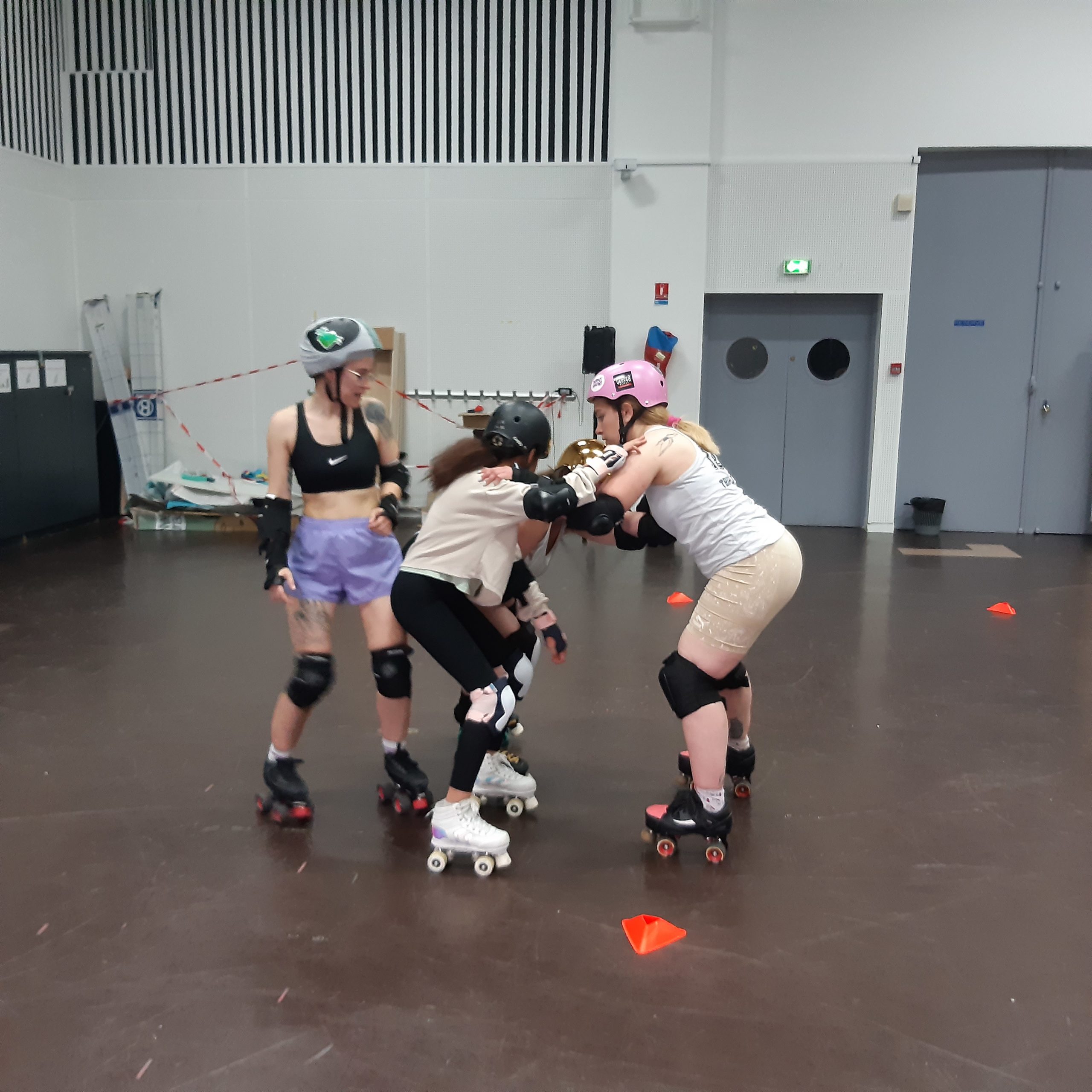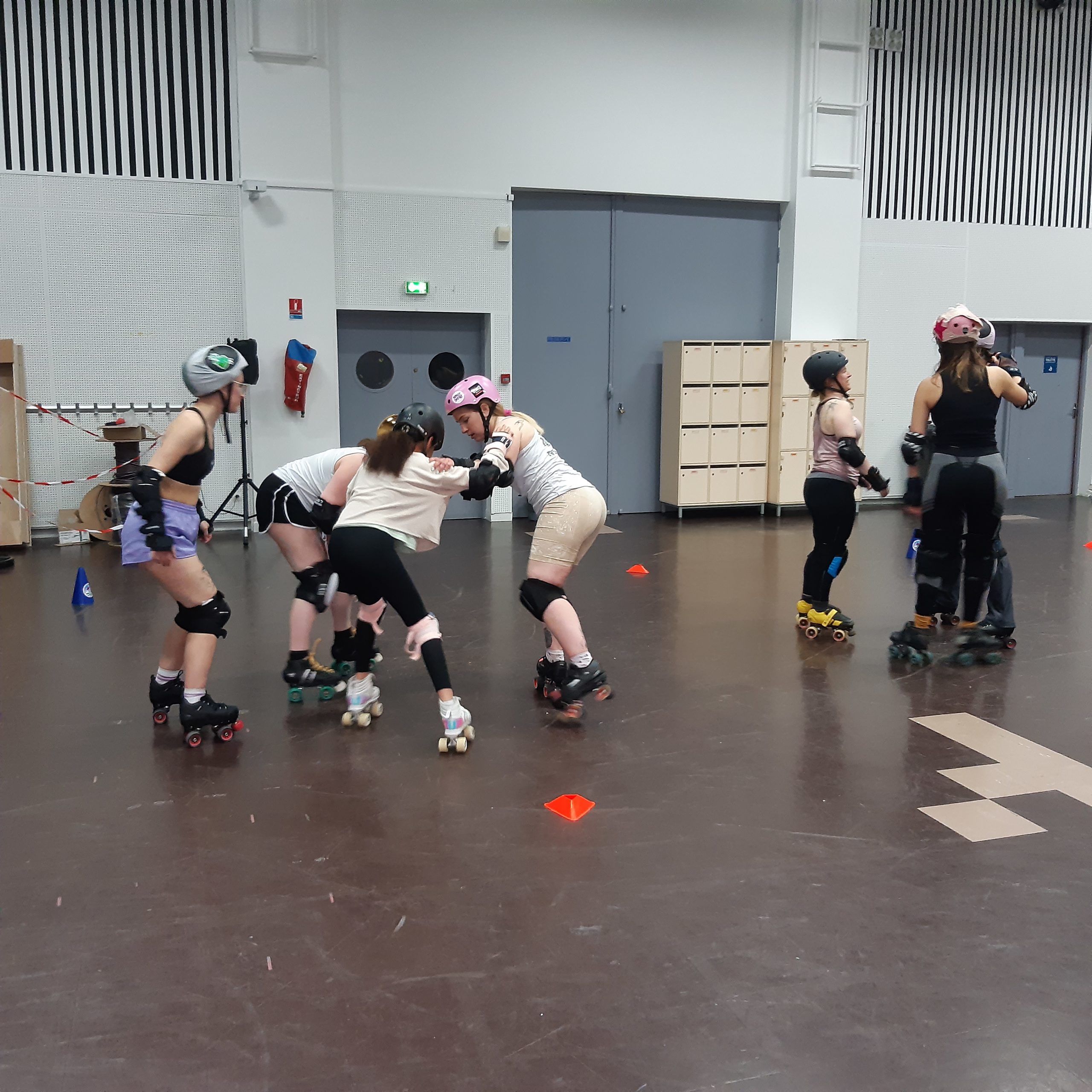 Il est plusieurs façons de pratiquer le roller, et parmi elles, le roller derby. C’est un sport de contact, puisqu’il s’agit, pour une équipe de 5 joueuses, en quads, d’empêcher de passer l’équipe adverse, sur un ovale délimité dans un gymnase. Et d’arriver à aider sa « jameuse » à traverser le « pack » adverse. Le tout, avec des règles et restrictions drastiques, pour éviter que cela dégénère.