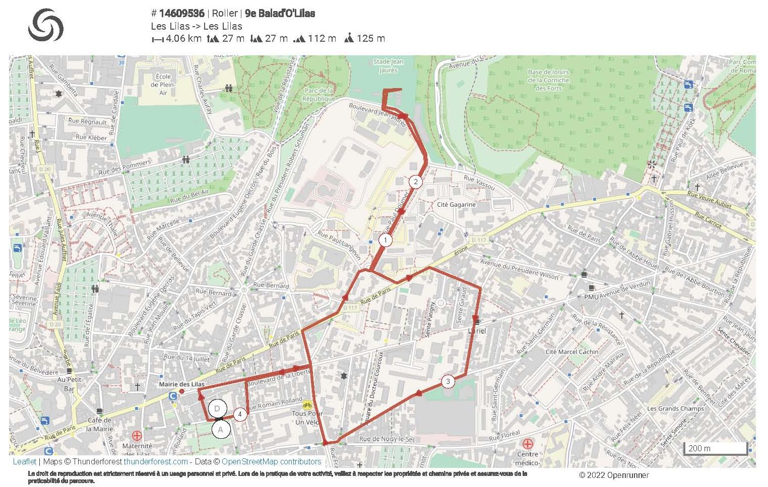 Dimanche prochain, le 22 mai 2022, le club de roller « Roolilaslet’s » organise une balade à roller, vélo, trottinette, etc. Elle est gratuite et tranquille, le trajet fera environ 4 km, au total. Le rendez-vous est sur le parvis de l’école Romain Rolland, aux Lilas (près de la Mairie). Il faut y être à 14 h, roller au pied, si possible avec votre casque et autres protections, et surtout, votre bonne humeur.